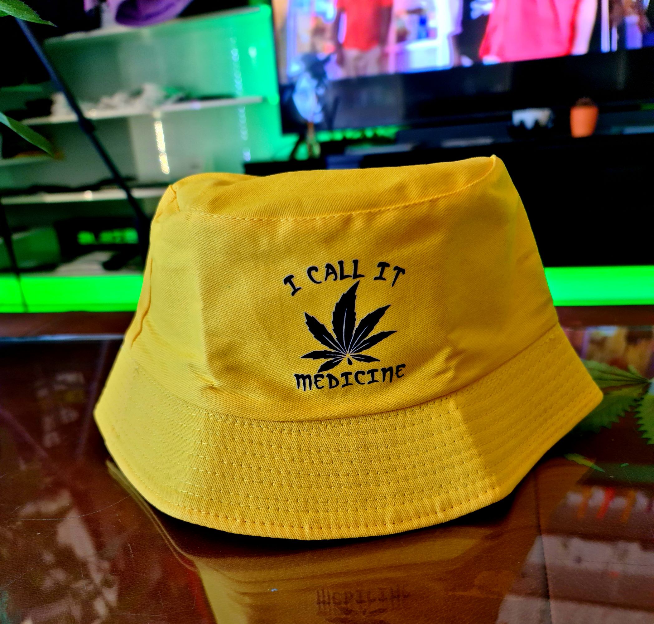 Czapka typu bucket wykonana z bawełnianej tkaniny z dekoracyjnym haftem.